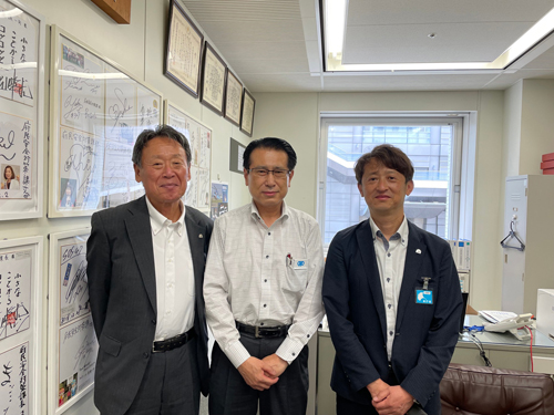 その後、生活安全部府民安全対策課を訪問し、本年4月に着任された助中府民安全対策課長、日高調査官に挨拶を行いました。