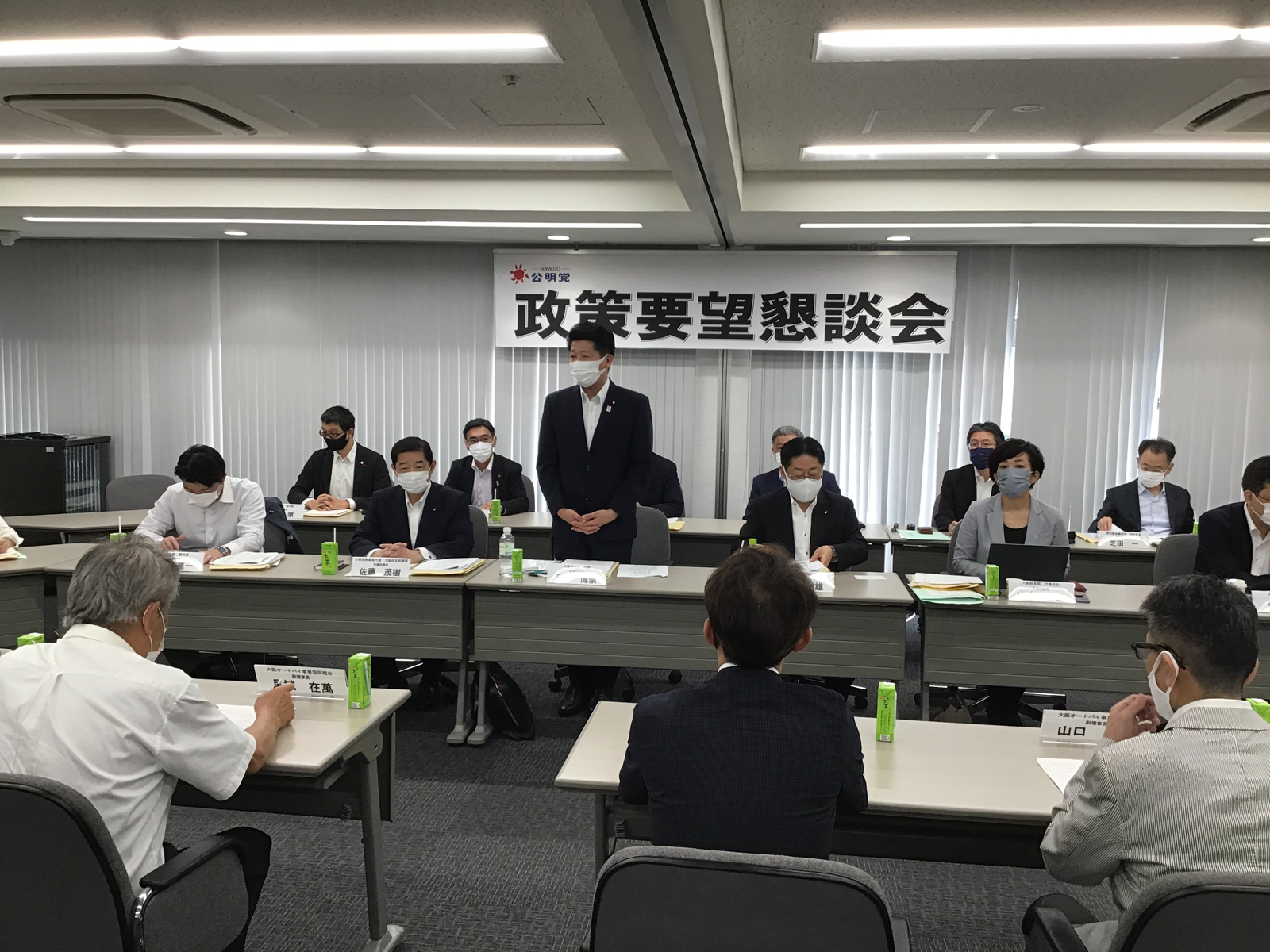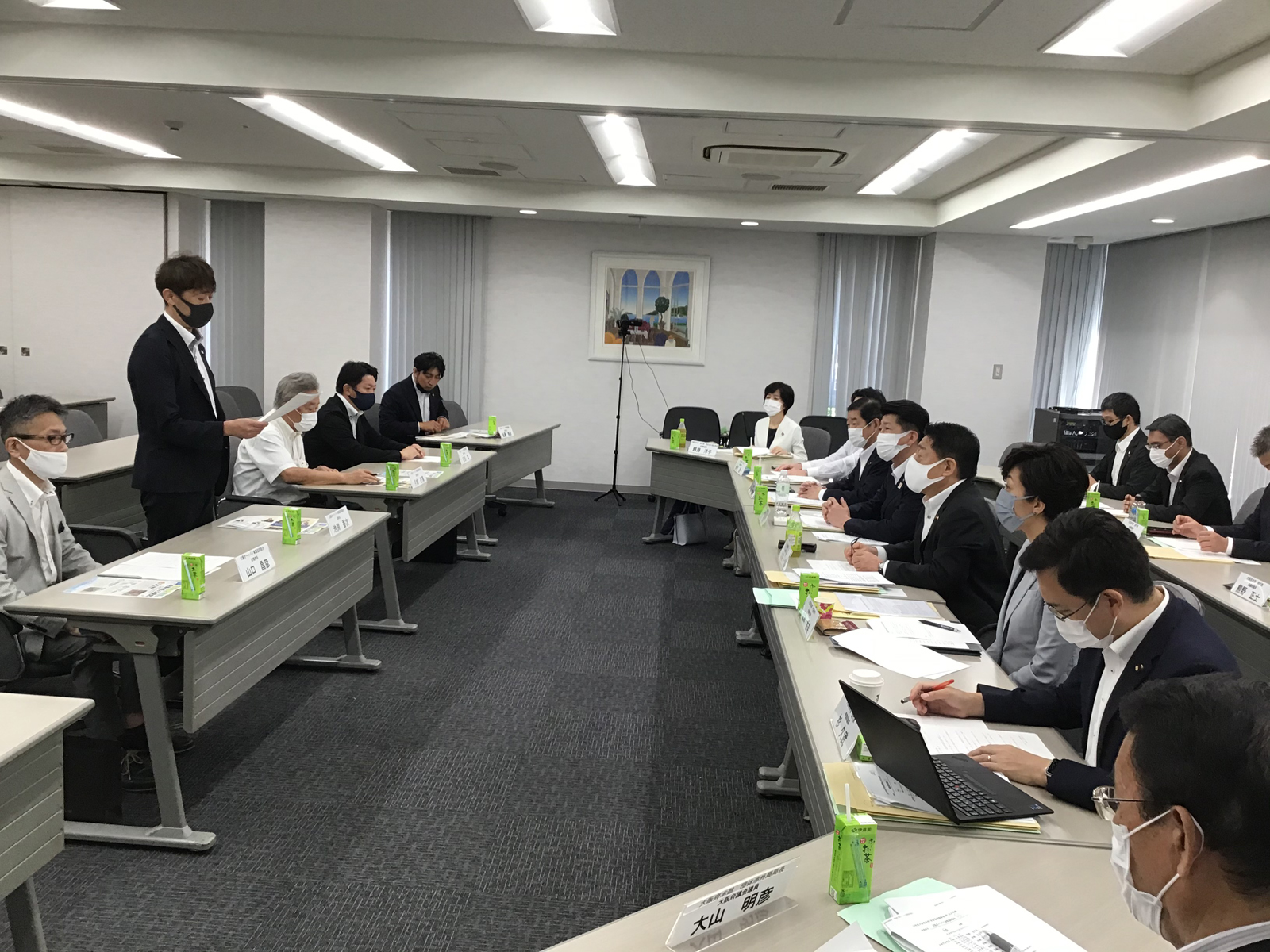 公明党大阪府本部は7月13日(火)午前10時30分より大阪市西区の関西公明会館において令和3年度の政策要望懇談会を行いました。公明党大阪府本部からは石川博崇 大阪府本部代表、北側一雄 公明党オートバイ議員懇話会会長(公明党副代表)をはじめ国会議員や府議会議員、市議会議員が組合からは池淵理事長、月城副理事長、山口副理事長、石田副理事長、後藤副理事長、福井専務理事が出席しました。池淵理事長が挨拶を行った後、①二輪車駐車違反取り締まりと二輪駐車場問題、②商品中古二輪車における軽自動車税免税、③違法な電動自転車、電動キックボードの取り締まりの強化、④三ない運動を含む交通教育の四項目について要望を行いました。