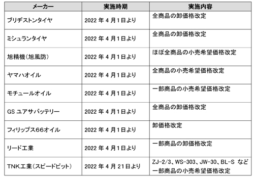 取り扱い各社 価格改定のご案内