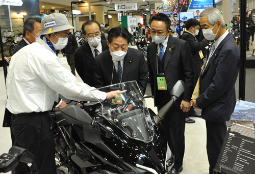 3月25日(金)から27日(に)までの3日間東京ビッグサイトで第49回東京モーターサイクルショーが開催され来場者数は12万3千人となりました。25日には、自民党オートバイ議員連盟の逢沢一郎会長、公明党オートバイ議員懇話会の北側一雄会長、日本維新の会オートバイ議員連盟の石井章事務局長、山際大志郎経済再生大臣を含めて11名の国会議員が視察を行いました。