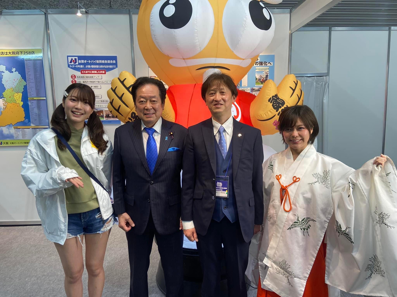 3月19日(土)から21日(月)までの3日間インテックス大阪1号館2号館3号館で第38回大阪モーターサイクルショーが開催されました。今年は「まん延防止措置」期間中のため入場規制を行いましたが3万4千人が入場しました。大岡敏孝環境副大臣、石井章参議院議員、松浪健太、中川誠太大阪府議会議員が来場されました。当組合も「バイクの神様スタンプラリー」「バイクの神様フォトコンテスト」とAJのこれまでの利用環境改善の成果を来場者に告知訴求、さらにBDSと共同で「BDSバイクセンサー」の告知を行いました。