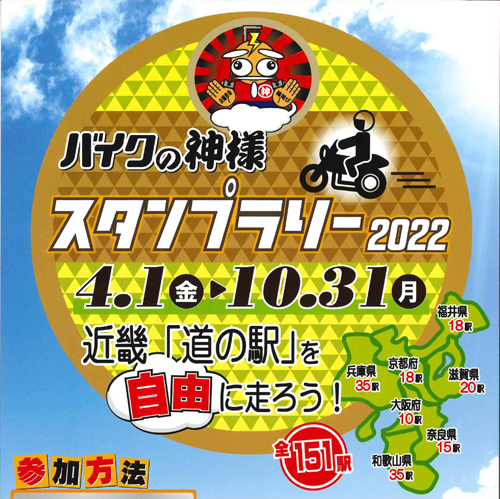 昨年に引き続き、組織広報委員会の企画により4月1日から10月31日まで近畿地区の「道の駅」(151駅)の5駅以上でスタンプを集めたユーザーを対象に抽選で賞品が当たるイベントを行います。